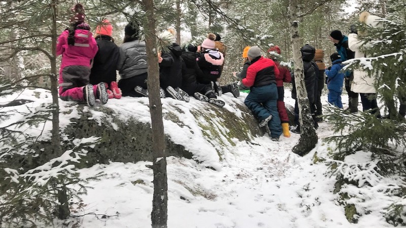 Eleverna får uppleva hur naturen anpassar sig till vintern genom praktiska övningar och lek.