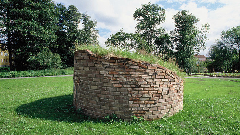 I trädgårdens mitt står en övervuxen ruin av ett torn med en dörr tecknad i tegelmuren. Konstnären Jan Håfström beskriver själv porten som projektets bärande symbol: