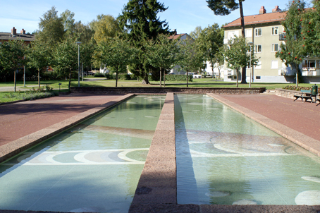 I den södra delen av parken finns en dammanläggning med blomsterplanteringar. Vid upprustningen av dammarna 1998 inspirerades konstnären Mette Wihlborg av 50-talets ölandssten. Hon skapade ett mönster i dammens botten av uppförstorade, stiliserade fossiler.